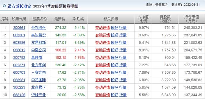 我们来看看其旗下基金的最新持仓情况: