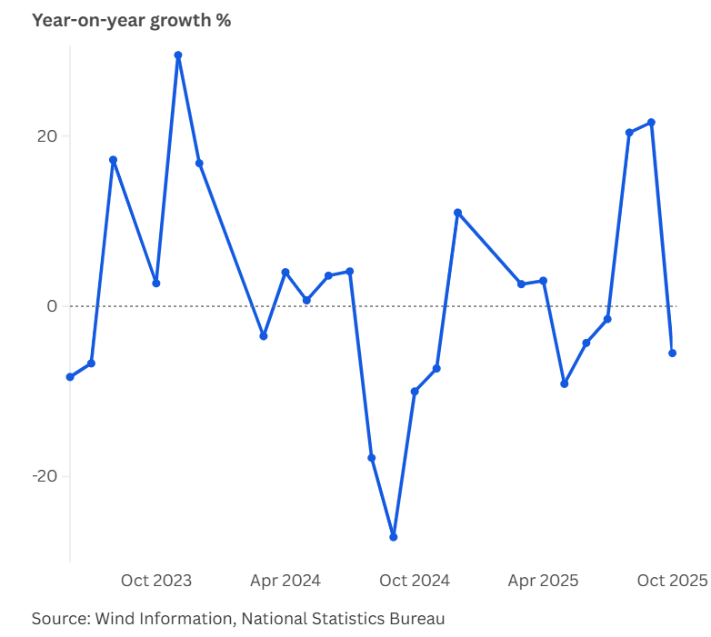 10月工业利润同比下降5.5%,为6月以来最大跌幅,扭转了9月强劲反弹的势头。9月工业利润曾同比激增21.6%,创下2023年11月以来最大涨幅。