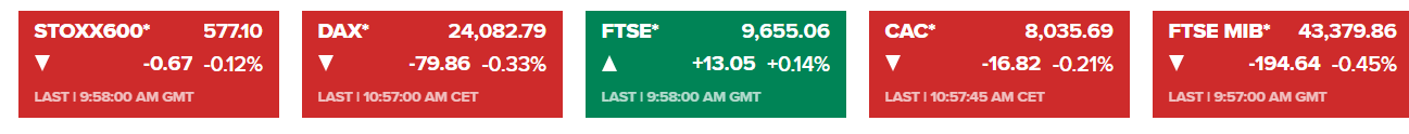 欧洲的Stoxx 600小幅下跌。多数主要股指几乎没有波动迹象,而地区股指涨跌互现。