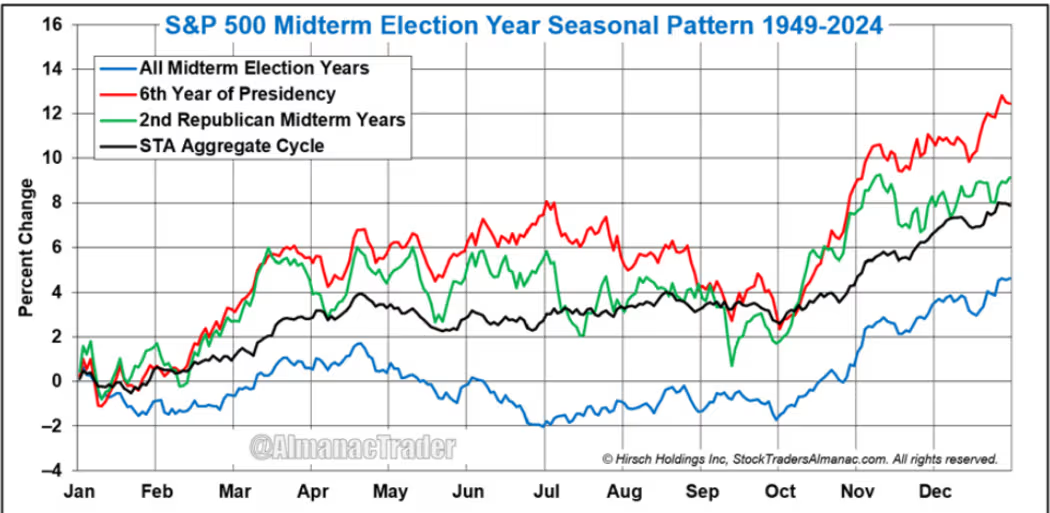 随着2025年接近尾声,投资者的目光已开始转向2026年——总统任期中的中期选举年。从历史经验来看,中期选举年通常并非股市的“顺风期”。