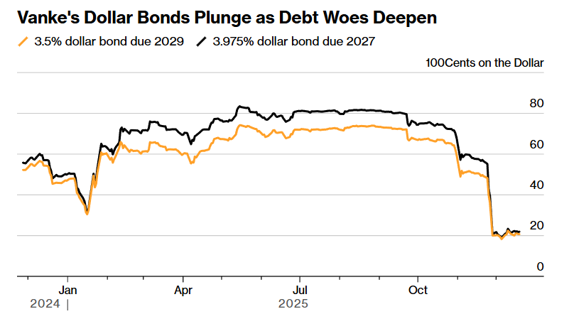 这些延付举措将万科美元债价格推至历史低点,接近面值的20%。这一跌势意味着,那些在今年早些时候、基于深圳市政府及最大国有股东深圳地铁集团将持续提供支持的预期、并以80美分以上价格买入债券的投资者,正面临巨额亏损。
