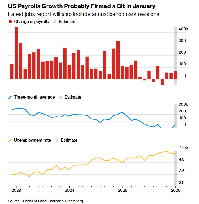 随着财报季推进,投资者本周后半段还将把注意力转向1月非农就业报告。市场将把这份数据与美联储官员的判断进行对照——后者认为,在2025年下半年招聘明显降温后,劳动力市场正在趋于稳定。