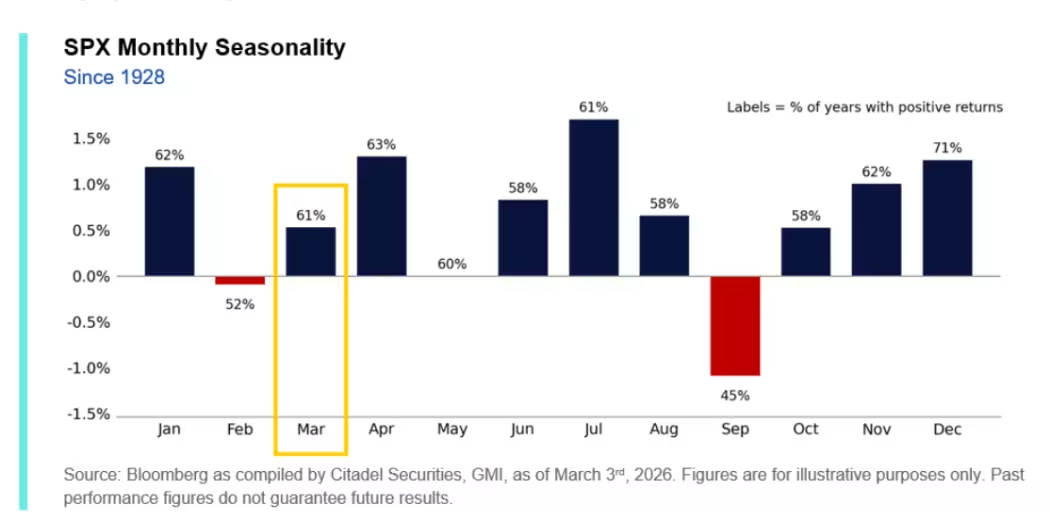 历史上,3 月和 4 月对股市的“季节性表现”明显强于 2 月。