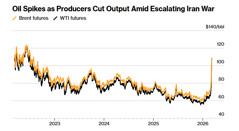 FX168财经报社(亚太)讯 受美以对伊战争看不到缓和迹象、且双方似乎都准备延长冲突影响,原油价格自 2022 年以来首次升破每桶 100 美元,周一(3月9日)全球股市随之重挫。美元走强,美国国债则全线下跌。