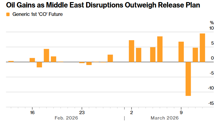 对投资者而言,能源市场仍是最大焦点,因为油气价格的持续波动不断推高通胀预期。油价再度上涨表明,市场对于长期战争的担忧,已经盖过富裕国家实施史上最大规模紧急释放原油储备所带来的缓解作用。