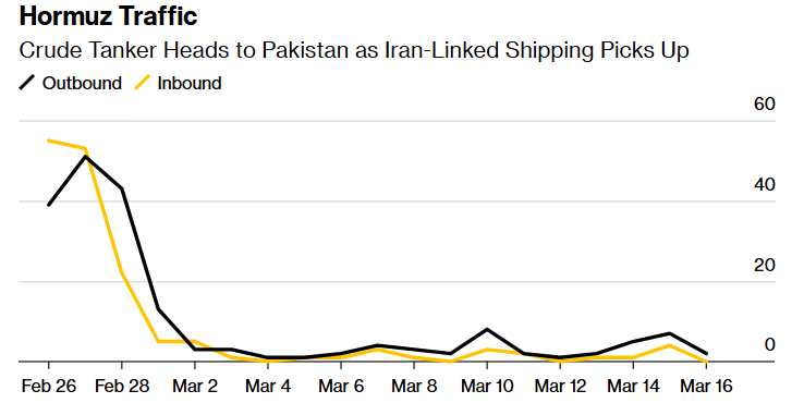 (霍尔木兹海峡航运动态 来源:彭博汇编的船舶追踪数据)