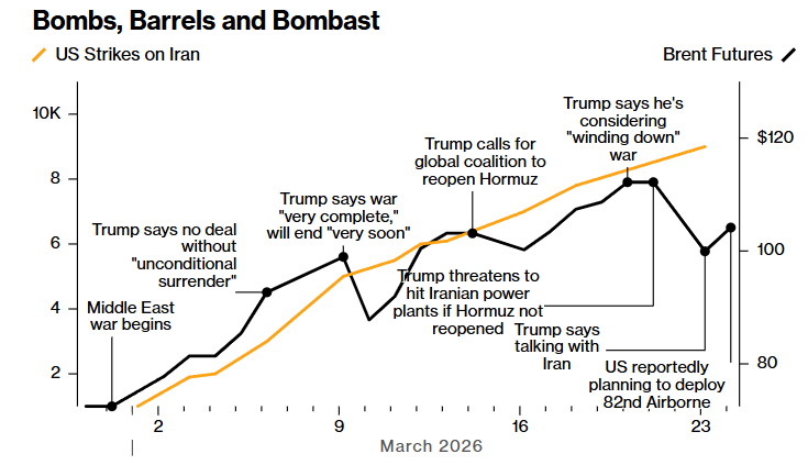 彭博MLIV 亚洲团队主管Garfield Reynolds表示:“美国近来不断释放有关潜在和平谈判的安抚性言论,这正成为投资者关注的焦点,并推动股债上涨、原油期货下跌。但考虑到冲突三方——美国、伊朗和以色列——的实际行动几乎没有显示出真正的降级,这种交易策略可能相当脆弱。”
