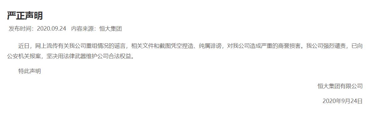 随后,恒大在一份声明中表示,社交媒体上有关其资产重组计划的帖子是“编造的”,但没有具体说明细节。该公司在8月31日的新闻稿称,公司上半年实现销售额3488亿,并保持了健康的运营。但它没有回答是否向政府寻求帮助的问题。