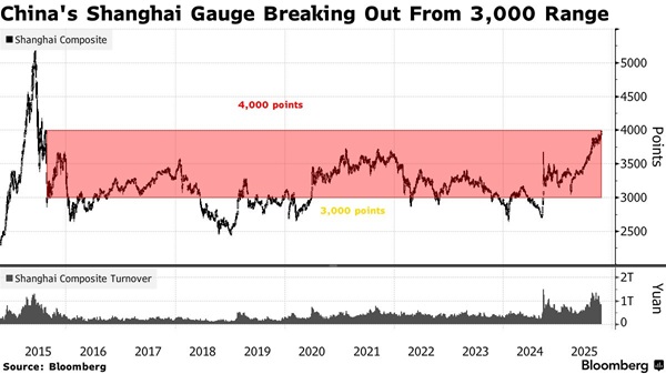 尽管市场政策利好,加上DeepSeek的突破引发的热情,但该指数此前一直远低于4000点大关。