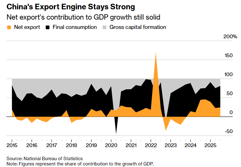 全球第二大经济体在与美国的第二轮贸易战中基本安然无恙。近期与特朗普政府的紧张关系出现缓和,加上今年中国出口表现异常强劲,很可能让中国领导层继续聚焦先进制造业和科技发展,即便这可能加剧全球贸易失衡。