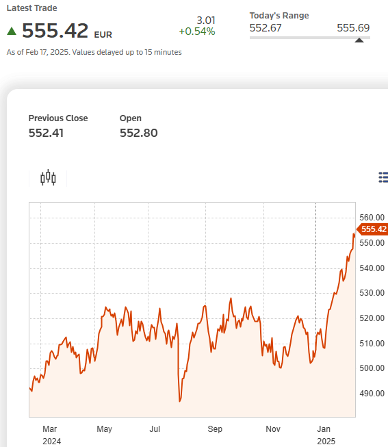 泛欧斯托克600指数(STOXX 600 Index, .STOXX)上涨0.54%,收于555.42点,创下历史新高。