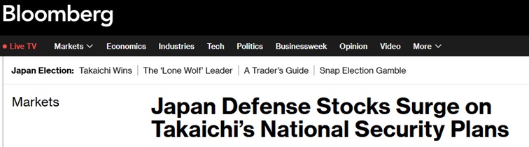 日本市场大行情!日本国防股因高市早苗的国家安全计划而飙升