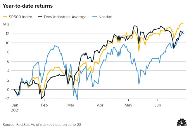 FX168财经报社(香港)讯 美国消费者新闻与商业频道(CNBC)周三(6月30日)最新报道称,在强劲的企业盈利和经济增长的推动下,美国股市预计在今年下半年仍会走高。不过,市场升势可能不会像上半年那样强劲。