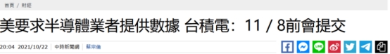 在这里面,最受关注的恐怕就是台积电了!日前,台积电在致路透的声明中表示,公司正在准备并将回应美国方面的信息要求。而据台媒《中时新闻网》报道,台积电将在11月8日前提交数据。