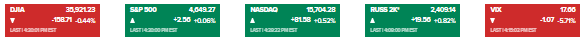 以科技股为主的纳斯达克指数收盘上涨0.5%,报收15704.28点。标准普尔500指数小幅收高,报4649.27点。道琼斯指数下跌158.71点,至35921.23点,跌幅0.4%,受迪士尼下跌7%拖累。