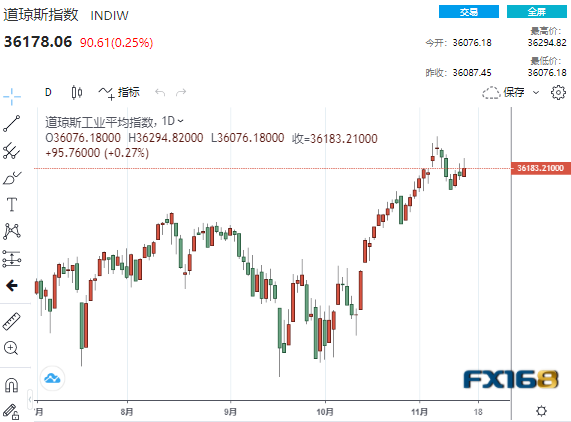 FX168财经报社(北美)讯 周二(11月16日),因沃尔玛预计假日季将表现强劲且美国10月零售销售强于预期,消费类股推高标普500指数和道琼斯指数,而纳斯达克指数主要科技股下跌抑制涨幅。