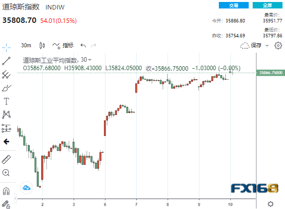 截至美国东部时间上午10点10分,道琼斯指数上涨85.38点,涨幅0.24%,至35840.07点;标准普尔500指数上涨23.04点,涨幅0.49%,至4690.49点;纳斯达克综合指数上涨77.22点,涨幅0.50%,至15594.59点。