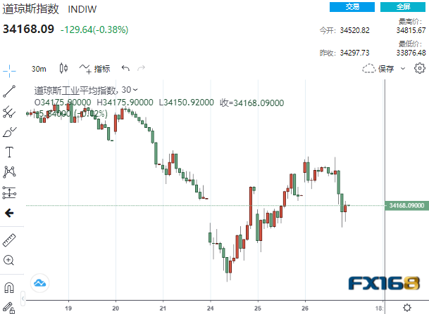 道琼斯指数收盘下跌129.64点,至34168.09点,跌幅达近0.4%。该指数盘中一度上涨超过500点,但在美联储发布最新消息后出现了震荡。标普500指数下跌0.2%,至4349.93点。受微软公布财报后收益的提振,纳斯达克综合指数收盘于13542.12点,微涨0.02%。