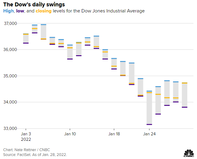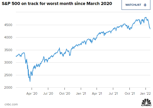 随着1月来到尾声,标普500指数正在经历自2020年3月以来最疲弱的一个月,下跌了7%。道琼斯指数可能迎来2020年10月以来最糟糕的一个月。