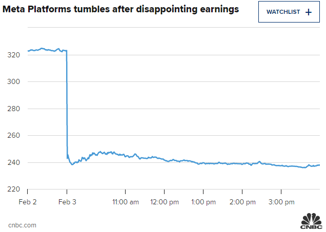 Meta平台的季度利润低于预期后,其股价暴跌了26.4%以上,创下美股历史上的最大市值跌幅。该公司还发布了低于预期的本季度收入预期。