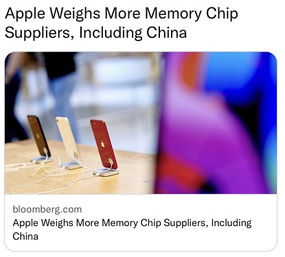 FX168财经报社(香港)讯 在日本合作伙伴铠侠(Kioxia)生产因原材料污染事件受阻后,苹果公司正探索新的内存芯片的供应来源。据悉中国内存大厂长江存储也在考虑名单内。