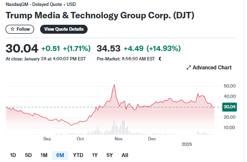 FX168财经报社(北美)讯 周三(1月29日),特朗普社交(Truth Social)母公司特朗普媒体与科技集团(Trump Media and Technology Group, TMTG)表示,其董事会已批准推出金融服务及金融科技(FinTech)品牌Truth.Fi,消息公布后,公司股价在盘前交易中上涨逾15%。