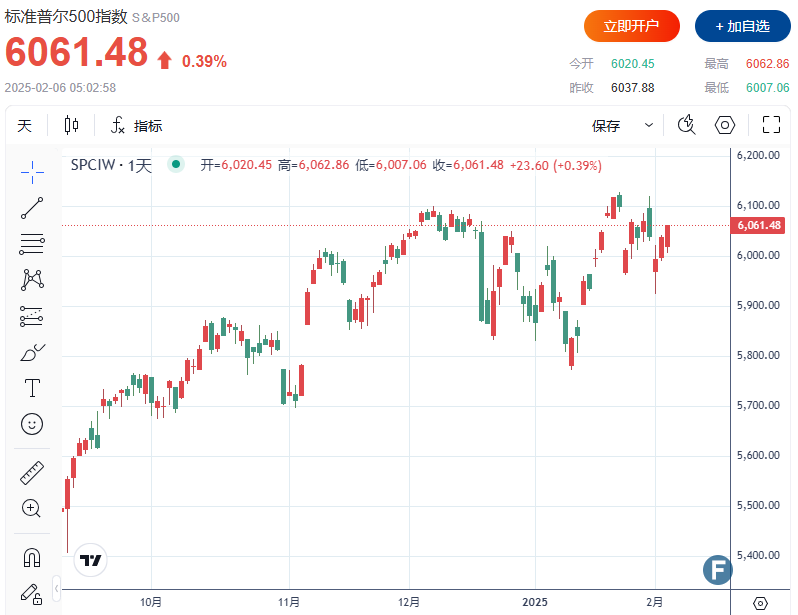 道琼斯指数收盘上涨317.24点,涨幅0.71%,报44873.28点;标普500指数收盘上涨23.60点,涨幅0.39%,报6061.48点;纳斯达克综合指数收盘上涨38.31点,涨幅0.19%,报19692.33点。