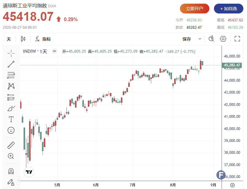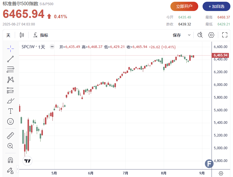 标普500指数上涨0.41%,收于6,465.94点;科技股集中的纳斯达克综合指数上涨0.44%,报21,544.27点;道琼斯工业平均指数上涨135.60点,或0.29%,收于45,418.07点。