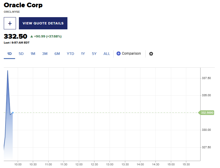 FX168财经报社(北美)讯 周三(9月10日),甲骨文(Oracle)股价暴涨近40%,因其公布的云业务需求数据惊人,推动公司迎来历史性涨幅。