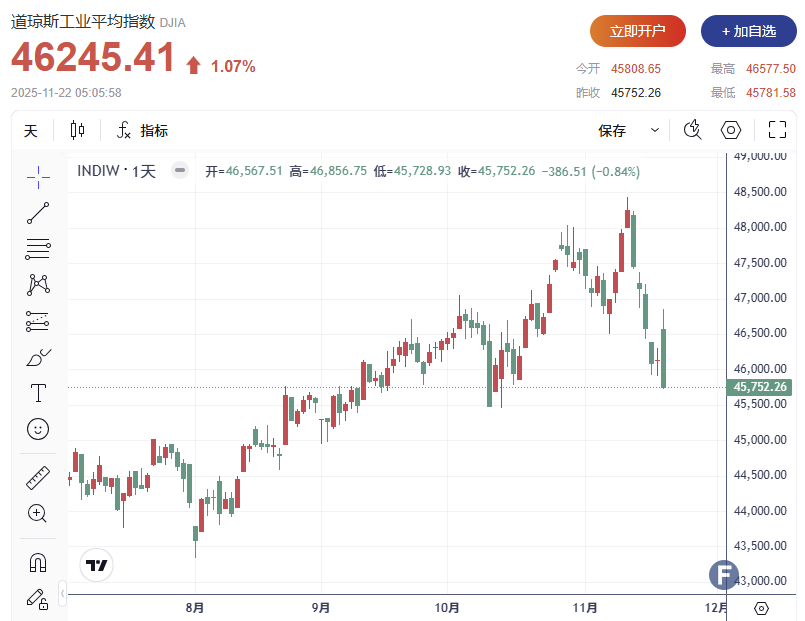 周四市场曾经历剧烈反转:早盘道指一度上涨超过 700 点,受英伟达(Nvidia,NVDA) 强劲财报推动;然而,随着英伟达涨势回落、市场担忧12月不降息,三大指数尾盘全线下挫;英伟达股价最终下跌超 3%。