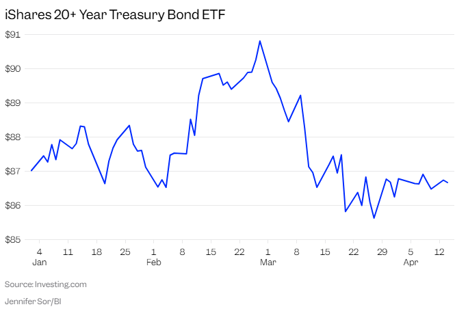 而代表长期美债表现的TLT,则较今年早些时候的高点下跌约4%。