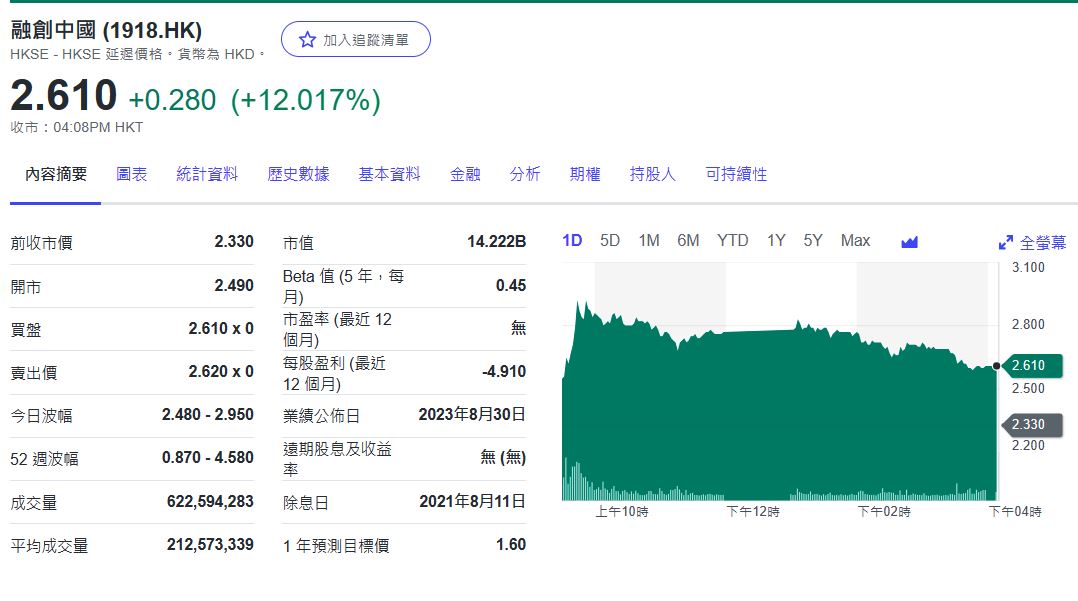 融创在香港上市的股价上涨21%,至2.820港元,创下两个月来的最高水平。这次重组可能涉及融创现有债务的完全清偿和释放,以换取新票据的发行。