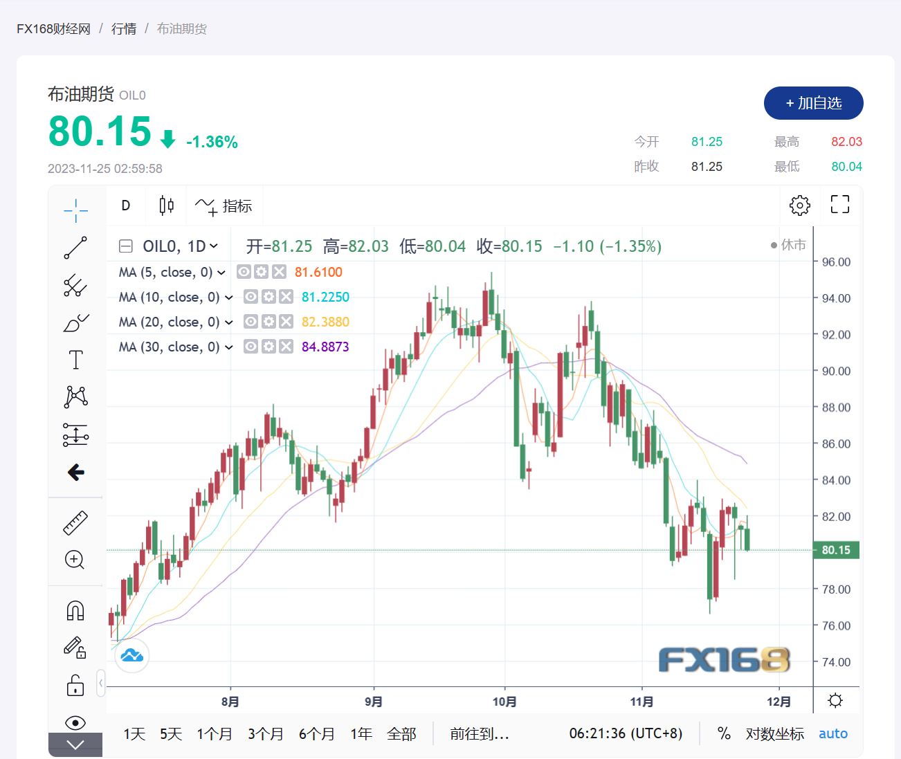 (布伦特原油期货走势图,来源:FX168)