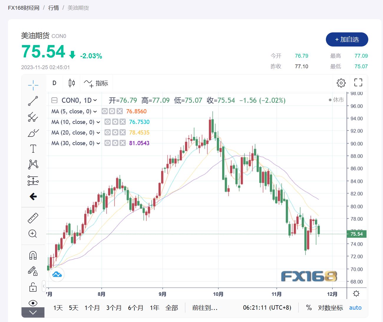 (美国西德克萨斯中质(WTI)原油期货走势图,来源:FX168)