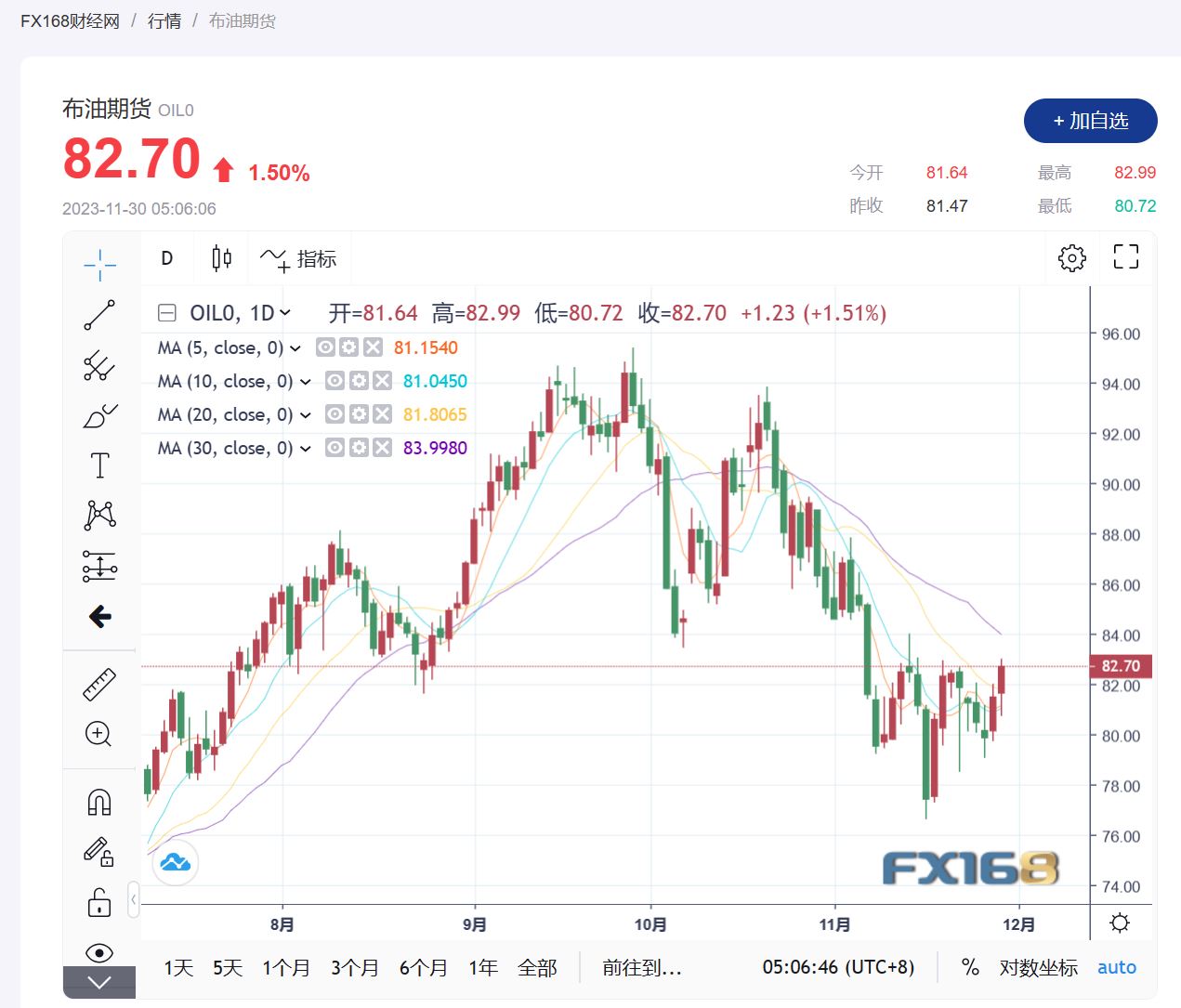 (布伦特原油期货走势图,来源:FX168)