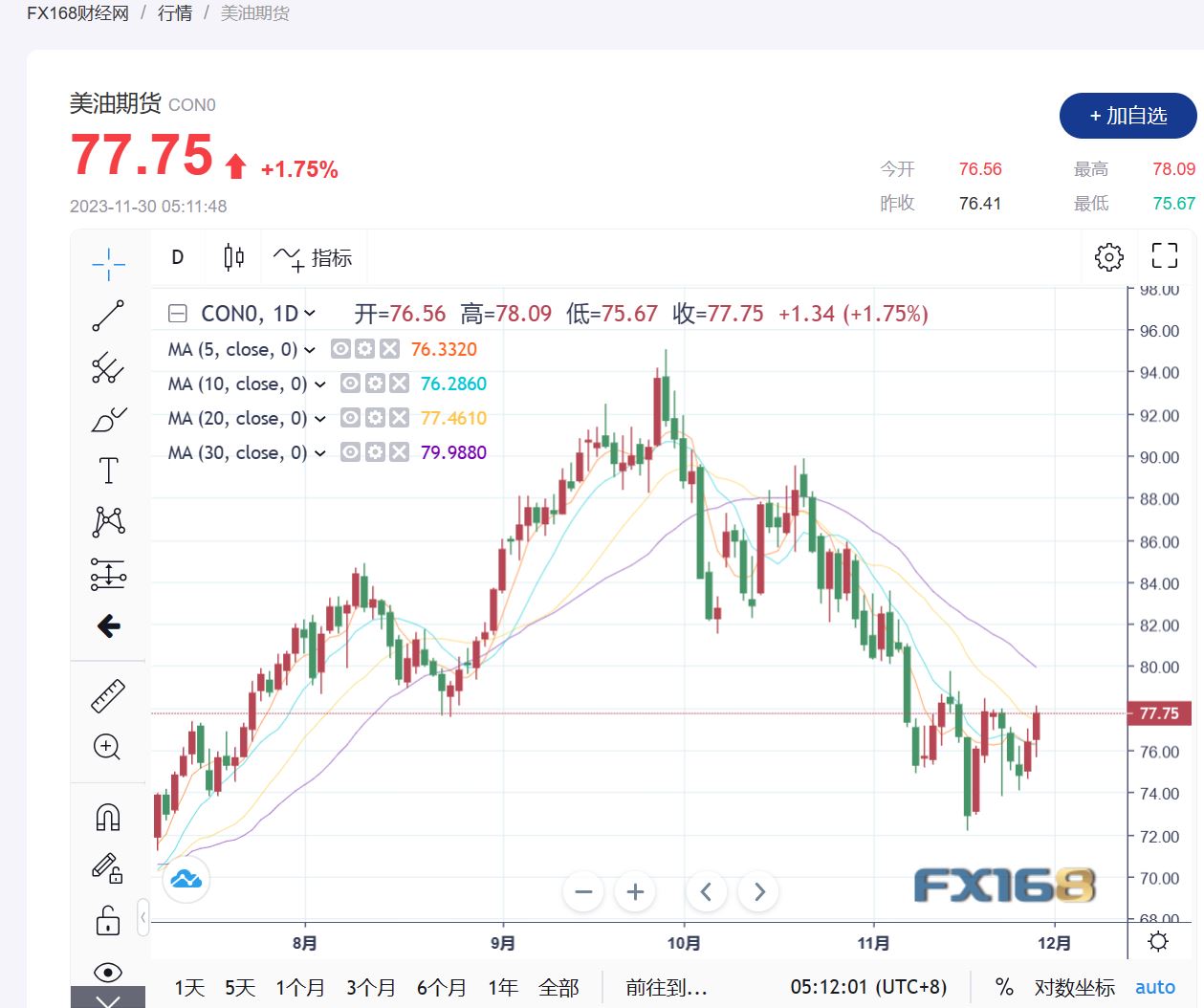 (美国西德克萨斯中质(WTI)原油期货走势图,来源:FX168)