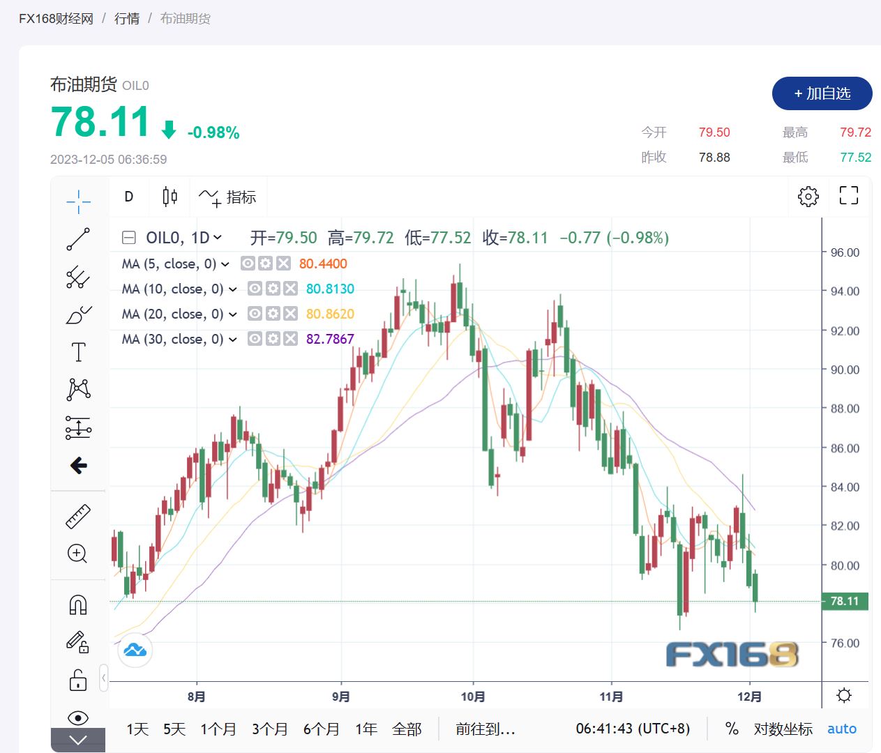 (布伦特原油期货走势图,来源:FX168)