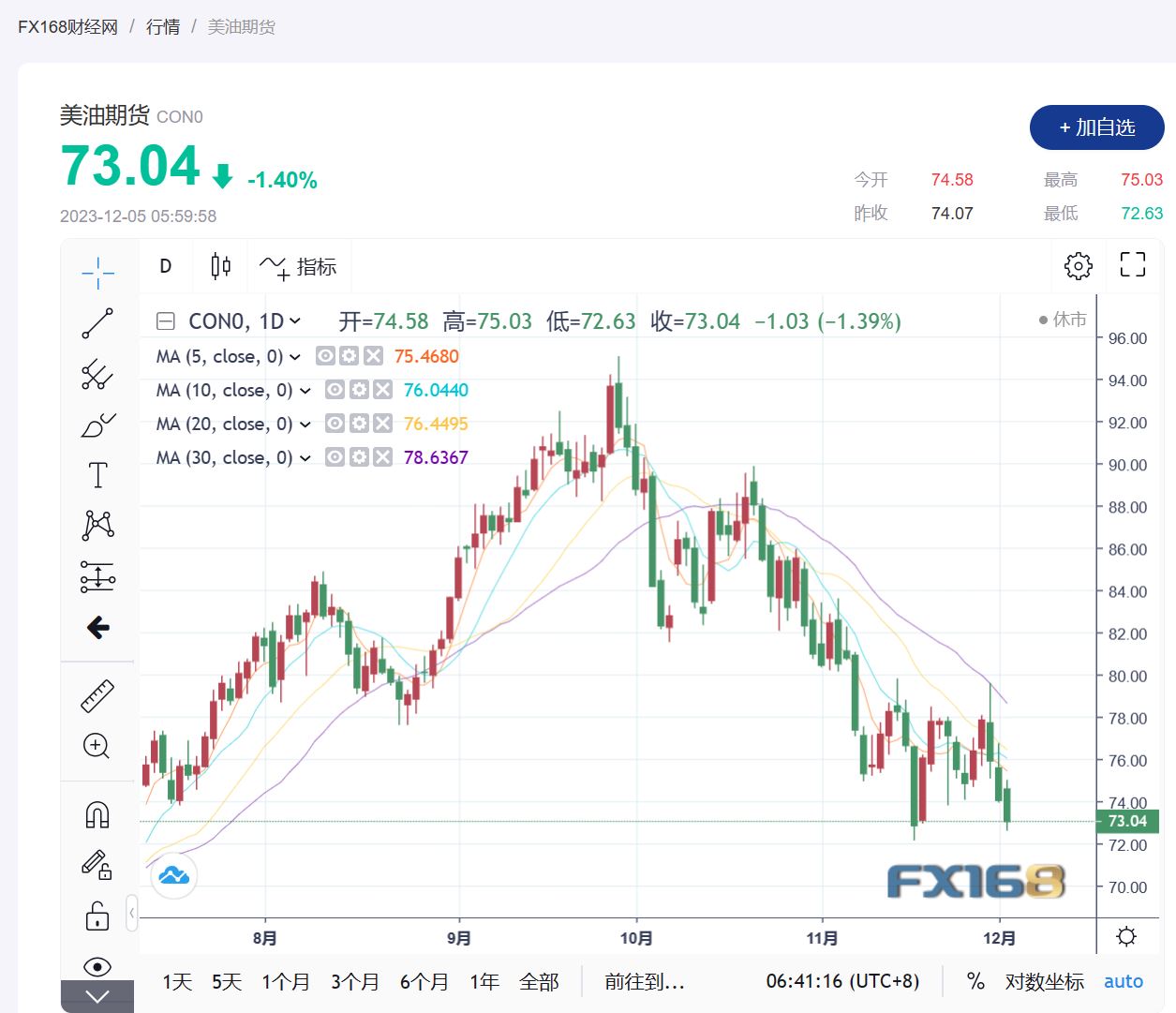(美国西德克萨斯中质(WTI)原油期货走势图,来源:FX168)