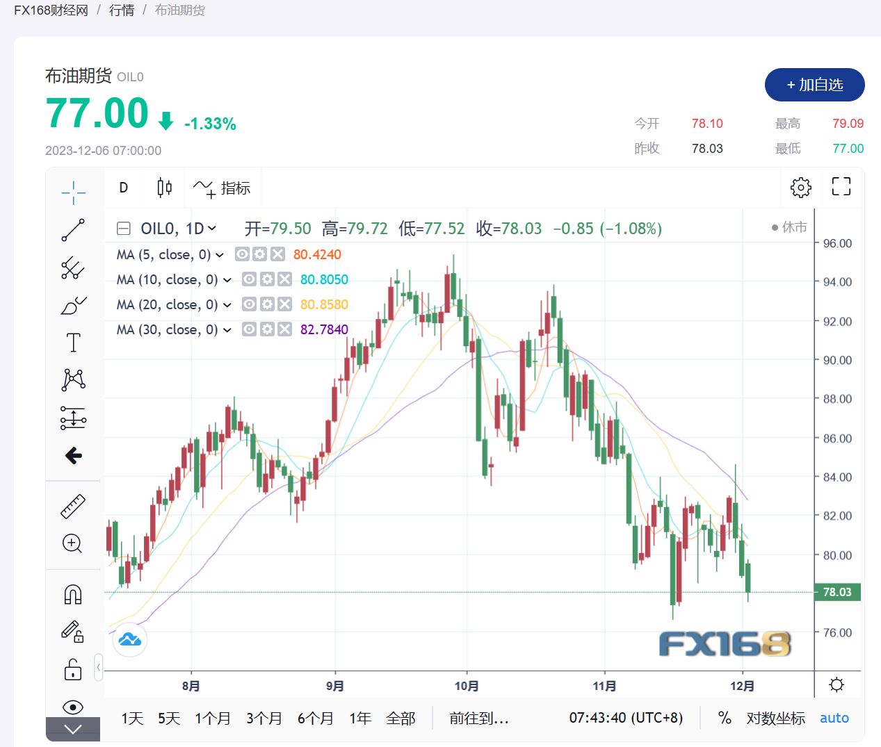 (布伦特原油期货走势图,来源:FX168)
