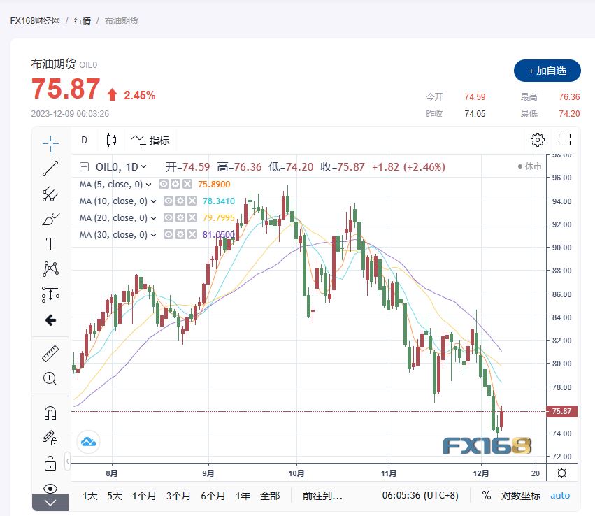 (布伦特原油期货走势图,来源:FX168)