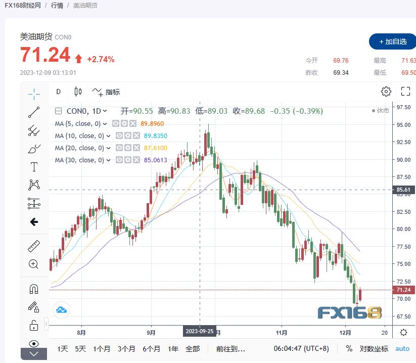 (美国西德克萨斯中质(WTI)原油期货走势图,来源:FX168)