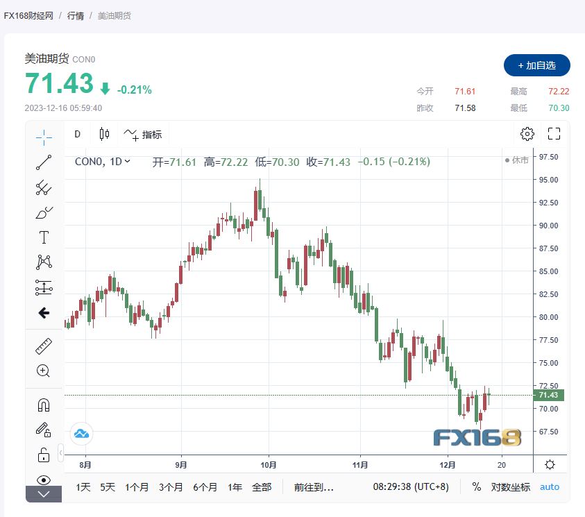 WTI1月原油期货收跌0.15美元/桶,跌幅0.21%,收报71.43美元/桶,本周累计上涨0.28%。