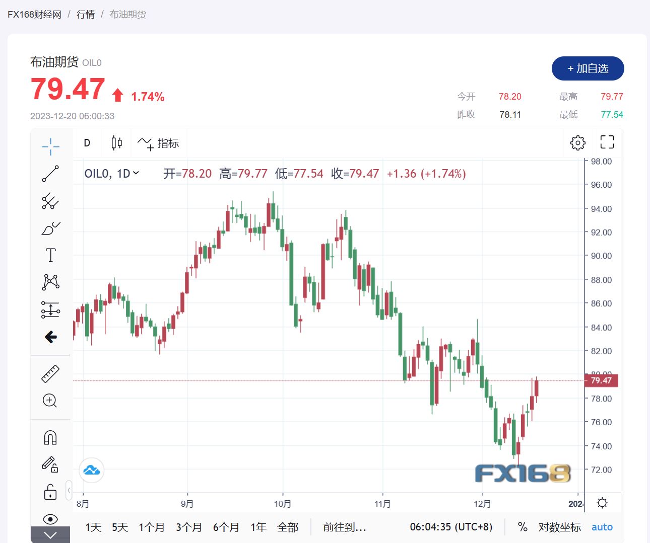 (布伦特原油期货走势图,来源:FX168)