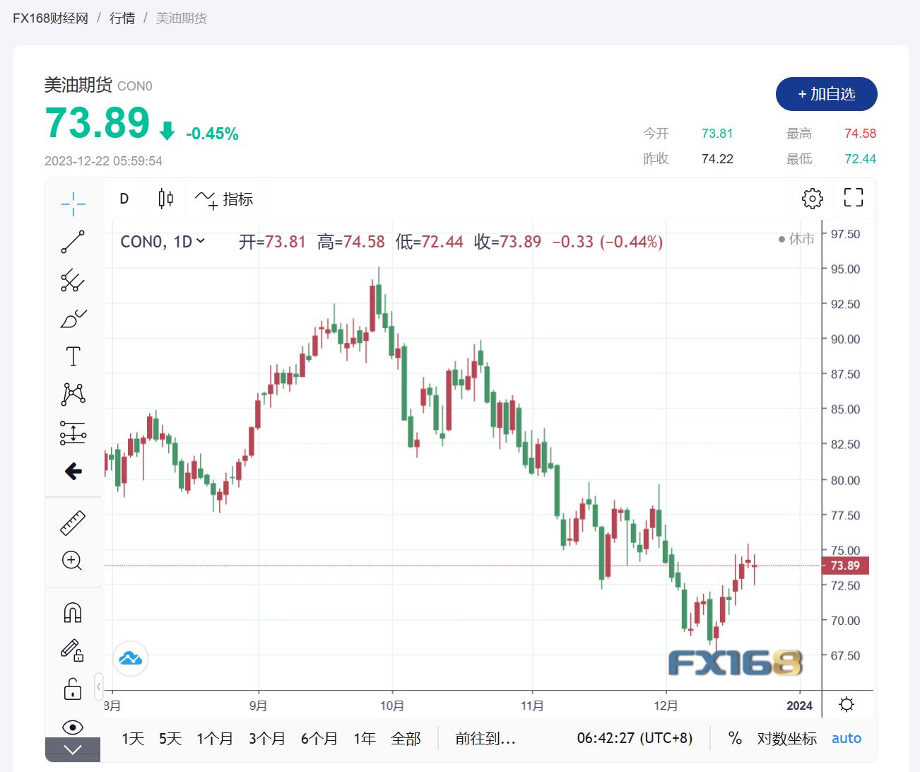 (美国西德克萨斯中质(WTI)原油期货走势图,来源:FX168)