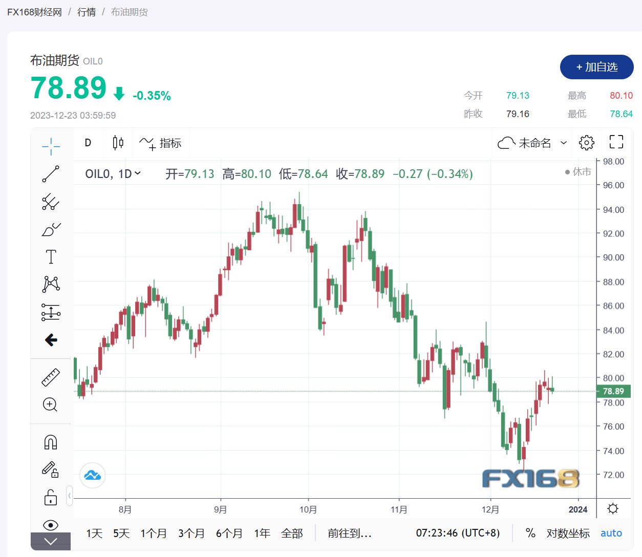 布伦特原油期货下跌 0.32美元/桶(或 0.4%),收报79.07美元/桶。截至发稿,现报78.89美元/桶,跌幅0.35%。