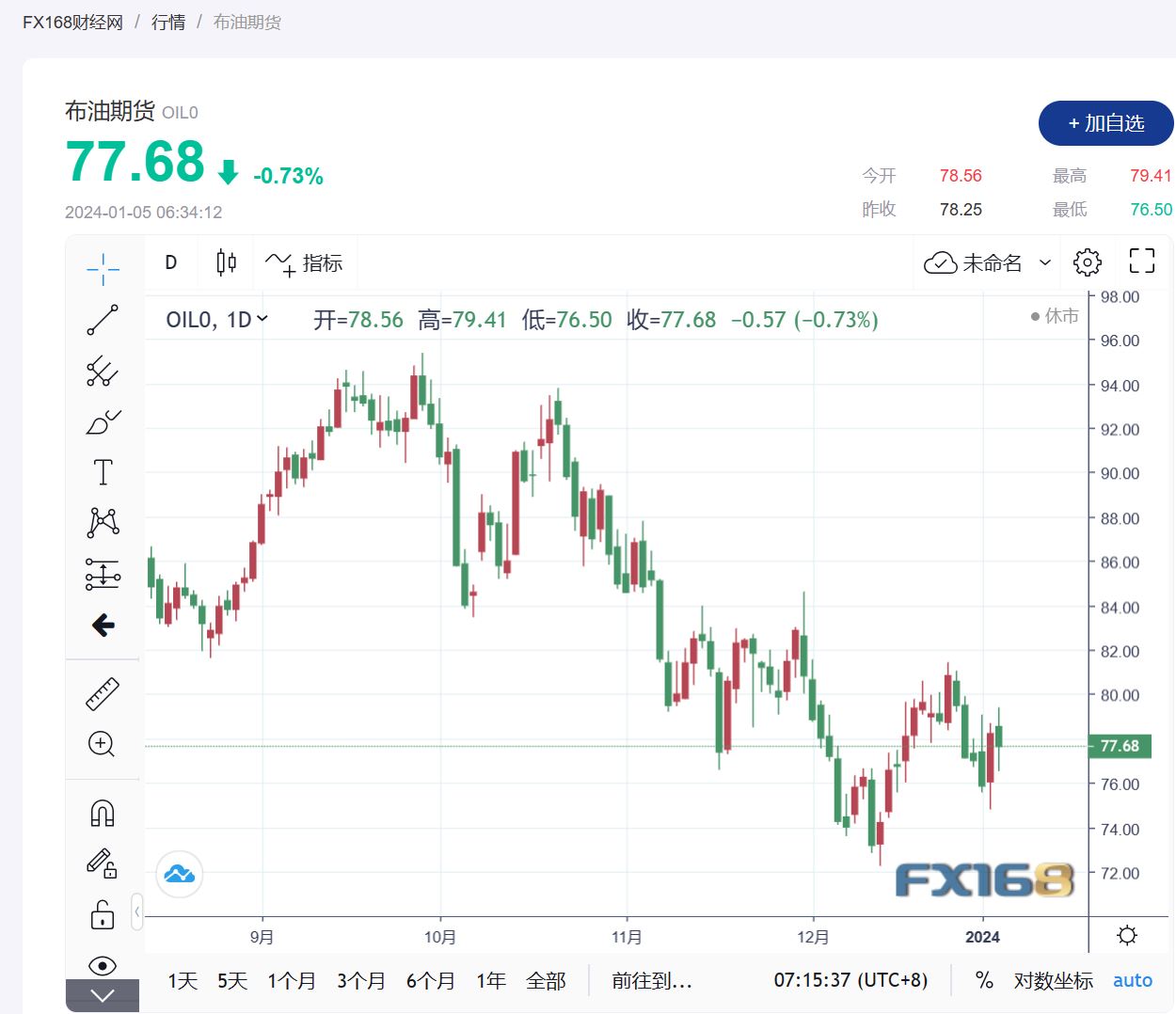 (布伦特原油期货走势图,来源:FX168)