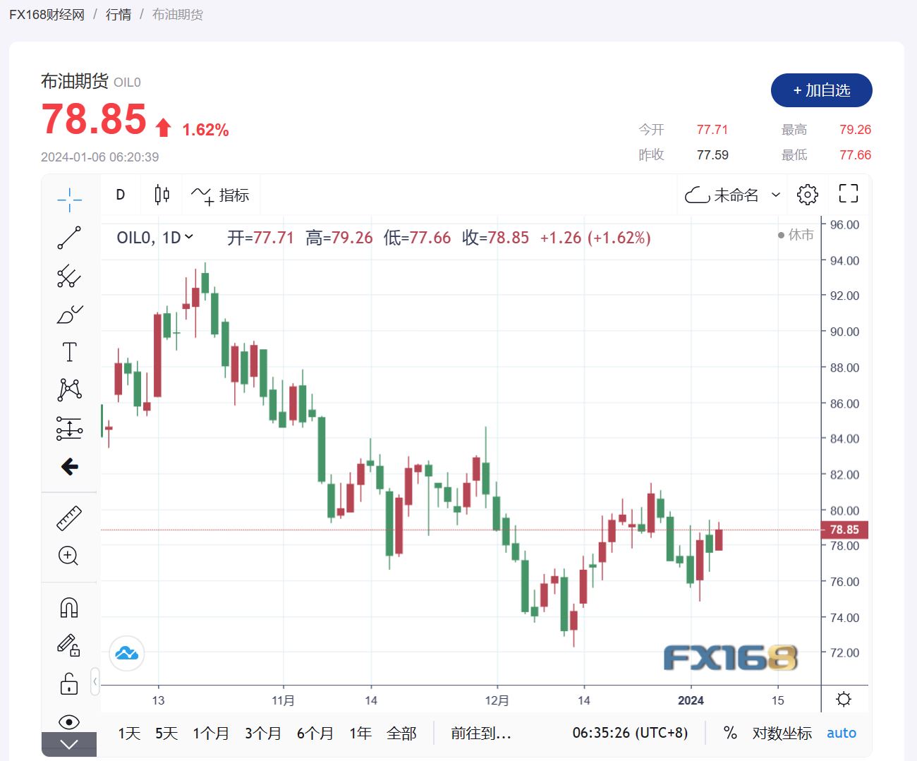 布伦特原油期货上涨 1.17美元/桶,涨幅 1.51%,收报78.76美元/桶。截至发稿,现报78.85美元/桶,涨幅1.62%。