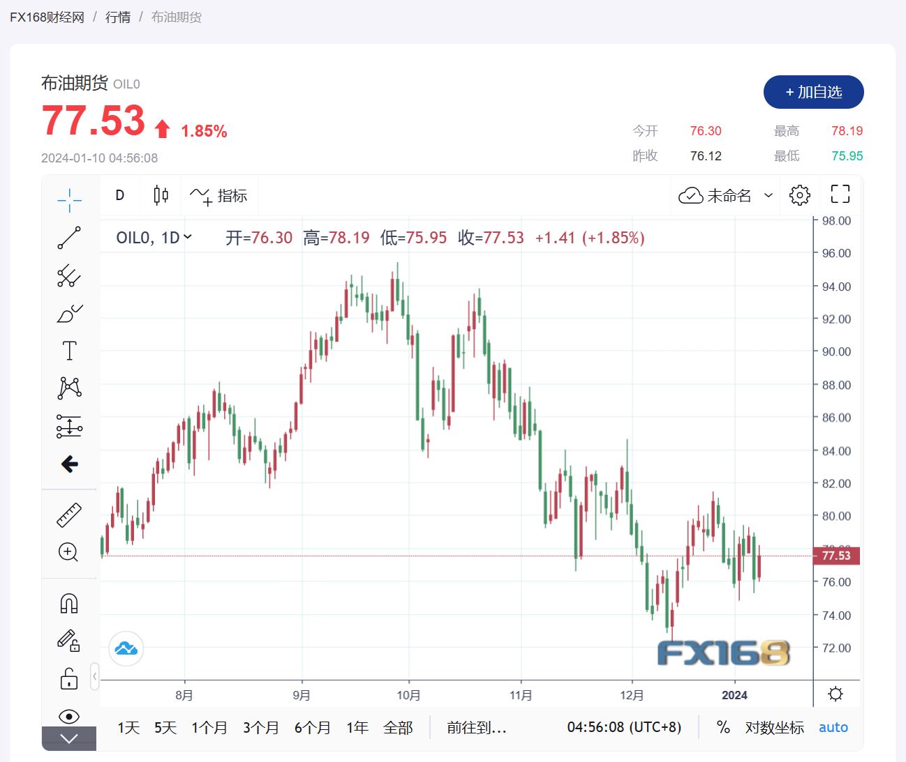 (布伦特原油期货走势图,来源:FX168)