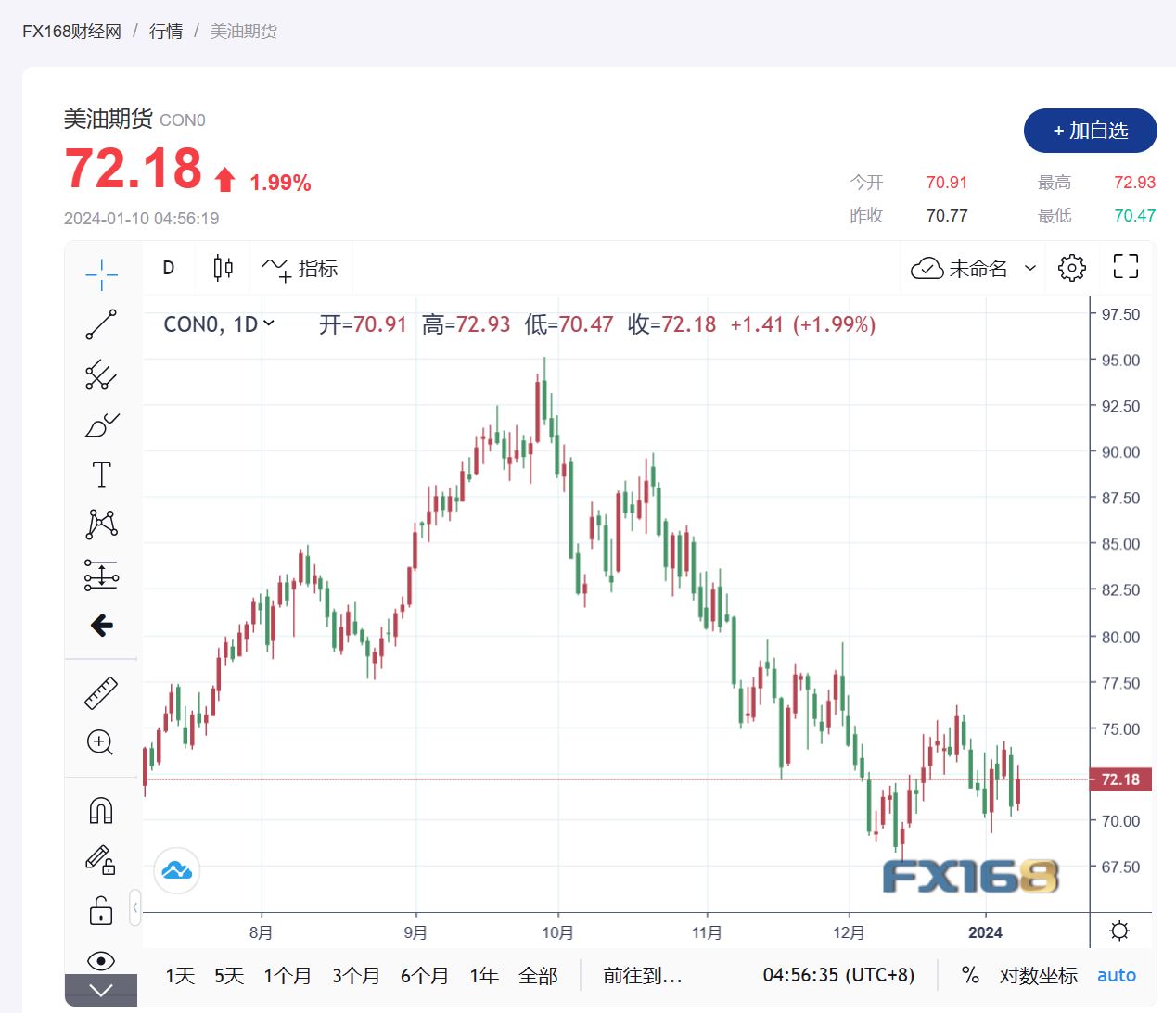 (美国西德克萨斯中质(WTI)原油期货走势图,来源:FX168)