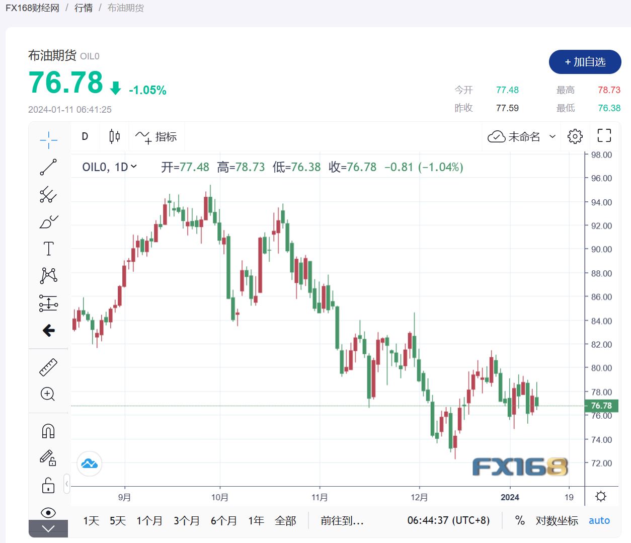 (布伦特原油期货走势图,来源:FX168)